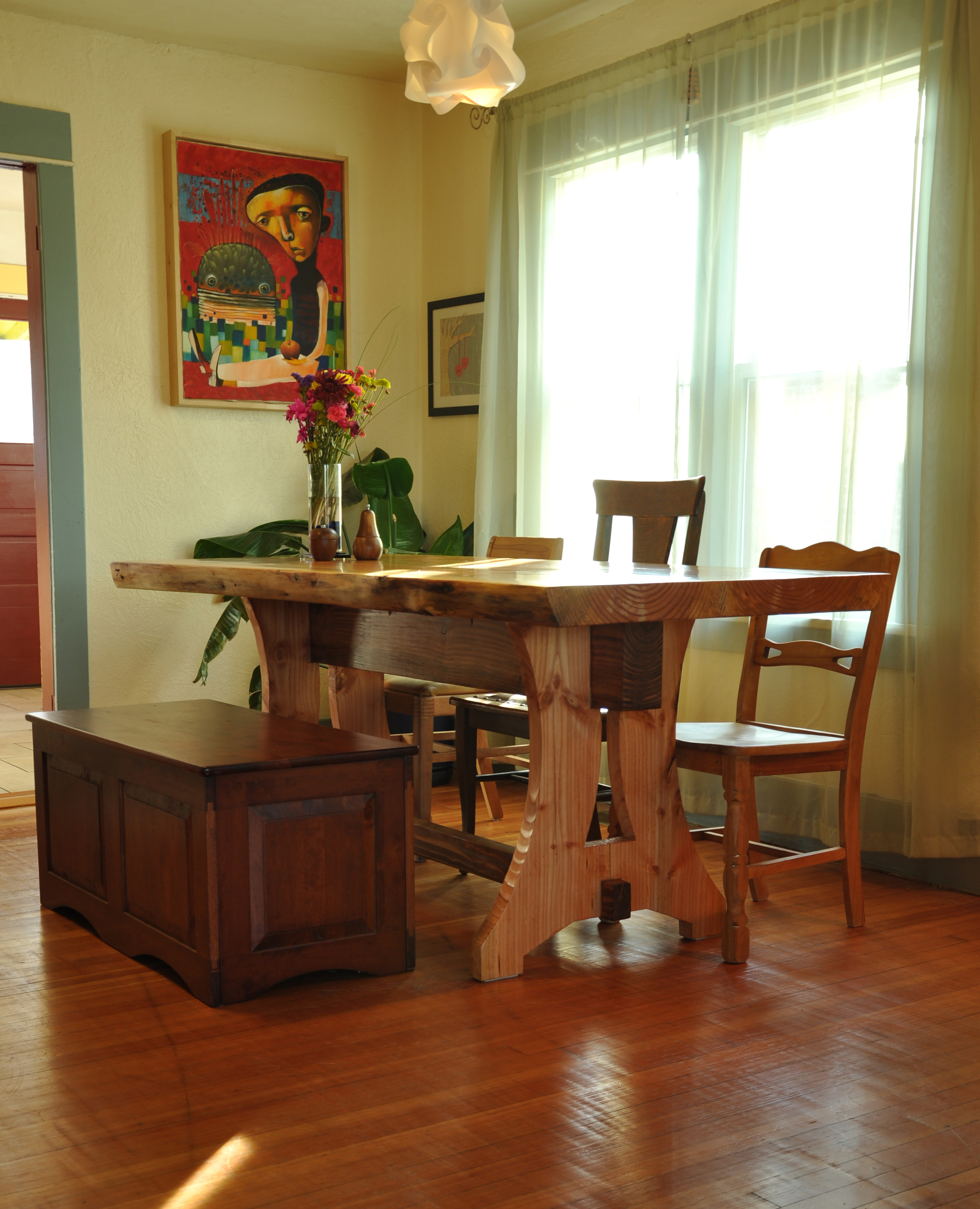 I recently completed work on a new dining room table for our house! I have included some pictures and information about the changes.